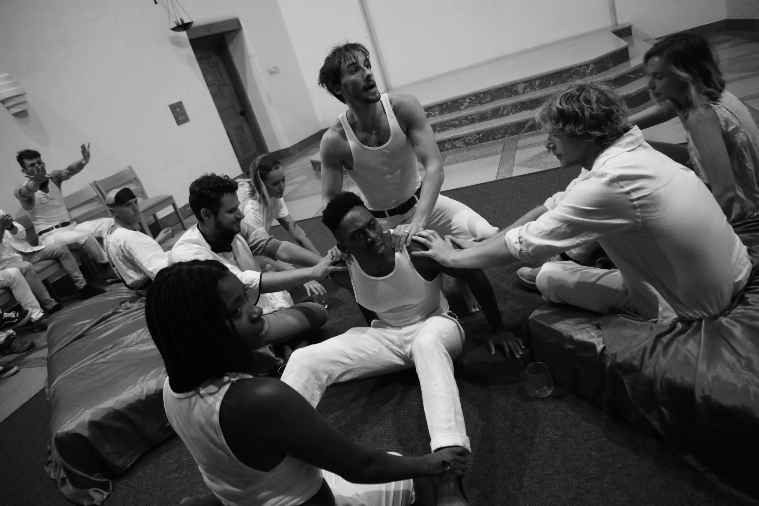 BATHSHEBA (2025) IS AN IMMERSIVE AND IRREVERENT RETELLING OF THE BIBLICAL DAVID AND BATHSHEBA STORY, TOLD THROUGH THE LENS OF A MODERN DAY CULT. ENTER INTO THE WORLD OF SUN RANCH, AN INSULAR COMMUNITY LED BY THE PROPHET DAVID KING, AS THEY WITNESS THE SELECTION OF THE BATHSHEBA, A WOMAN, ANOINTED BY GOD, WHO WILL BIRTH A DIVINE CHILD OF PEACE.